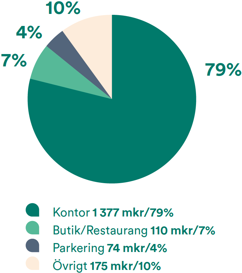 Vi tillför service som ska förenkla vardagen för våra kunder och öka värdet av att sitta i just våra hus och med oss som hyresvärd. Vi har fortsatt vår strävan mot att utveckla stadsmiljöer med helheten i fokus.
