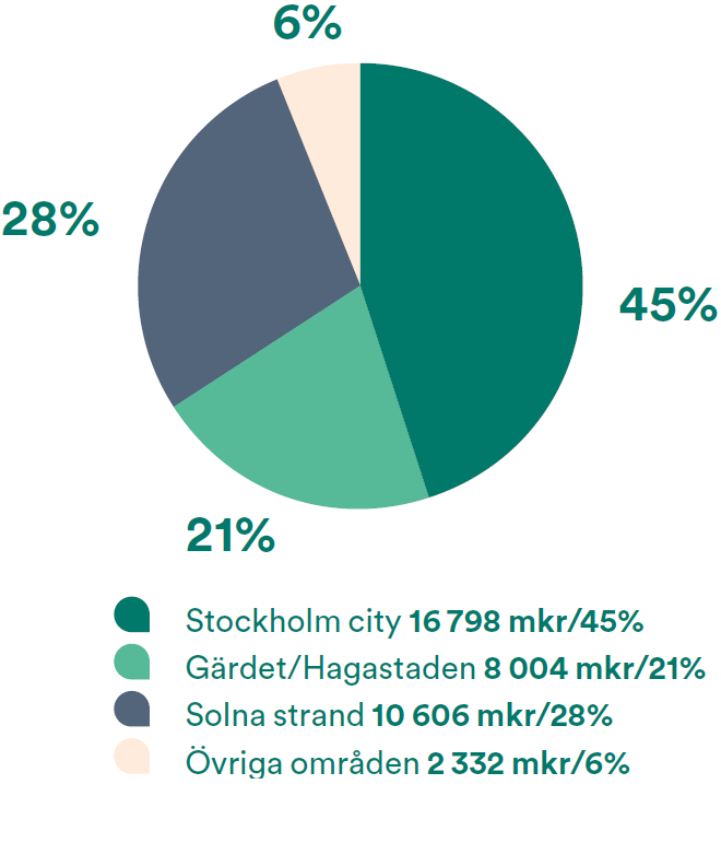 Humlegården utvecklar fastigheter och områden på strategiskt viktiga platser med goda framtidsutsikter. Vid årsskiftet uppgick projektvolymen till 2 109 mkr. Målsättningen med våra projekt är att förverkliga potentialen och stärka attraktiviteten inom de marknadsområden där vi är etablerade.