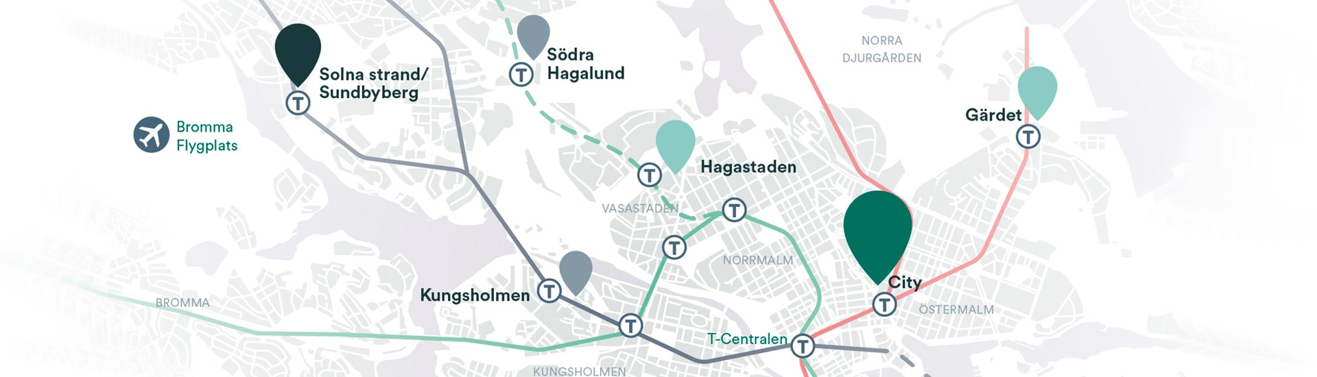 In Kungsholmen, Humlegården owns the Dykaren 10 office building and the adjacent hotel in the Dykaren 33 property on Alströmergatan. The popular neighbourhoods offer good transport links and an impressive range of restaurants and services.