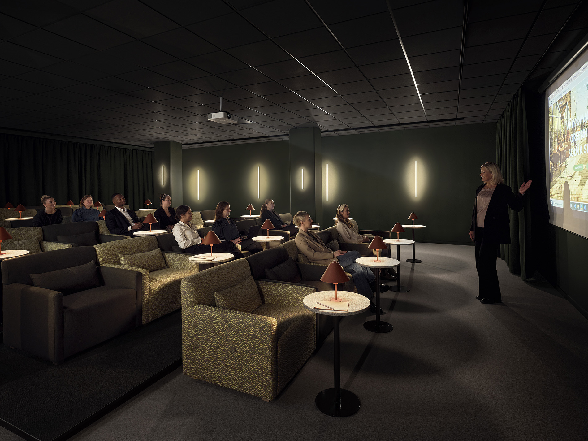 - Gemensamma arbetsytor, mötesrum i olika storlekar och loungemiljöer