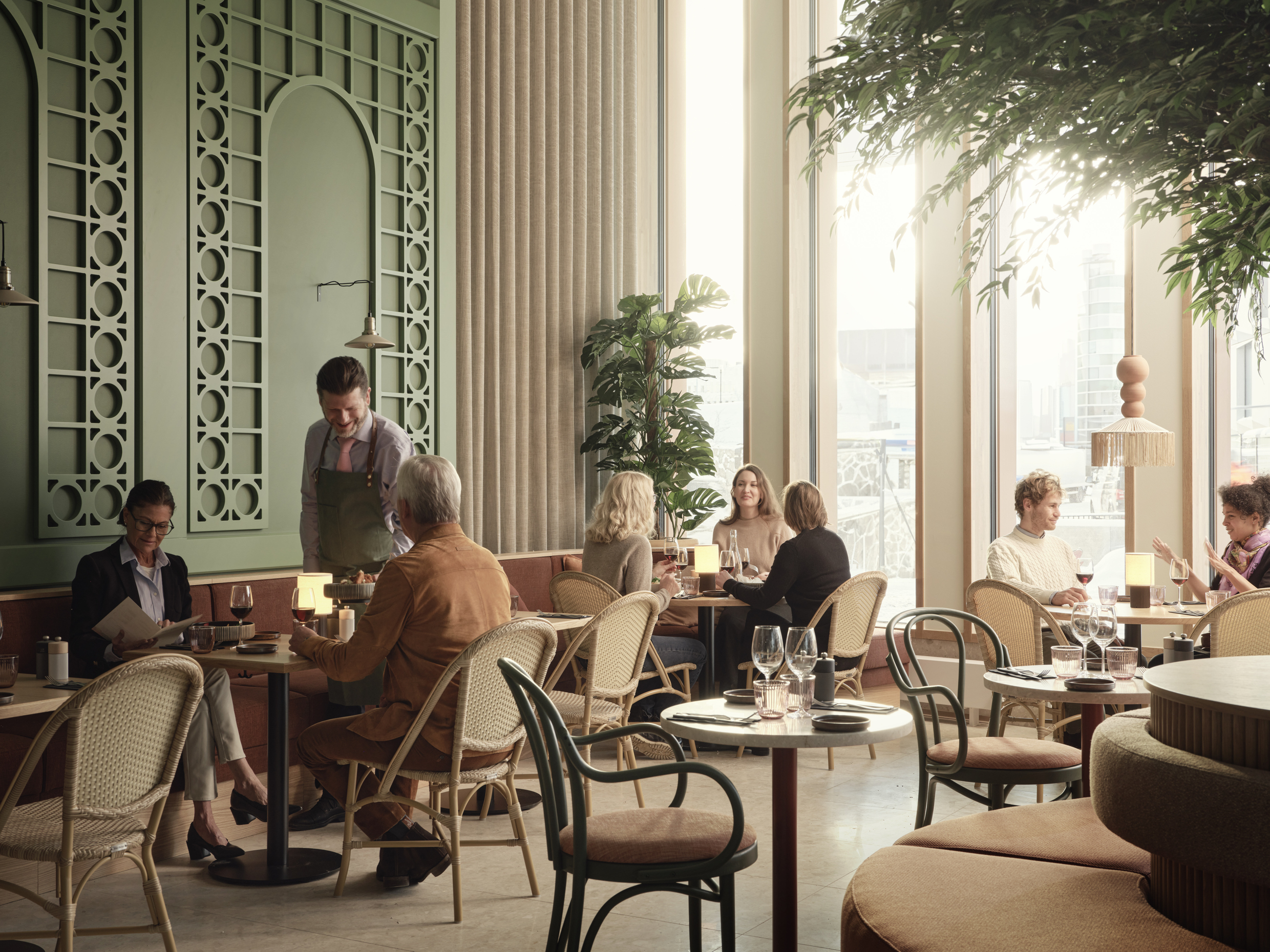 I närområdet finns det ca 20-talet bra restauranger oavsett om du söker en plats för frukostmöte, affärslunch eller catering. Under den varma årstiden växer sig Origos restaurang Bistro Victor ut på gården och platsen får en trevlig uteservering och miljöer där man även ska kunna ta med sig sin dator och arbeta i en kreativ miljö utomhus. Intill fastigheten ligger fyrstjärniga Grow Hotel, som ger liv och rörelse från tidig morgon till sen kväll.