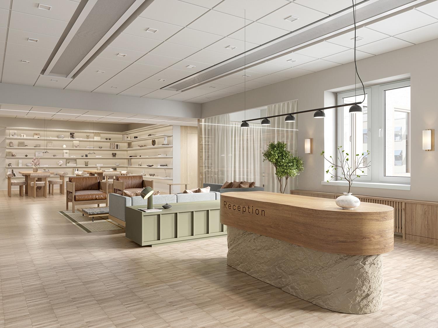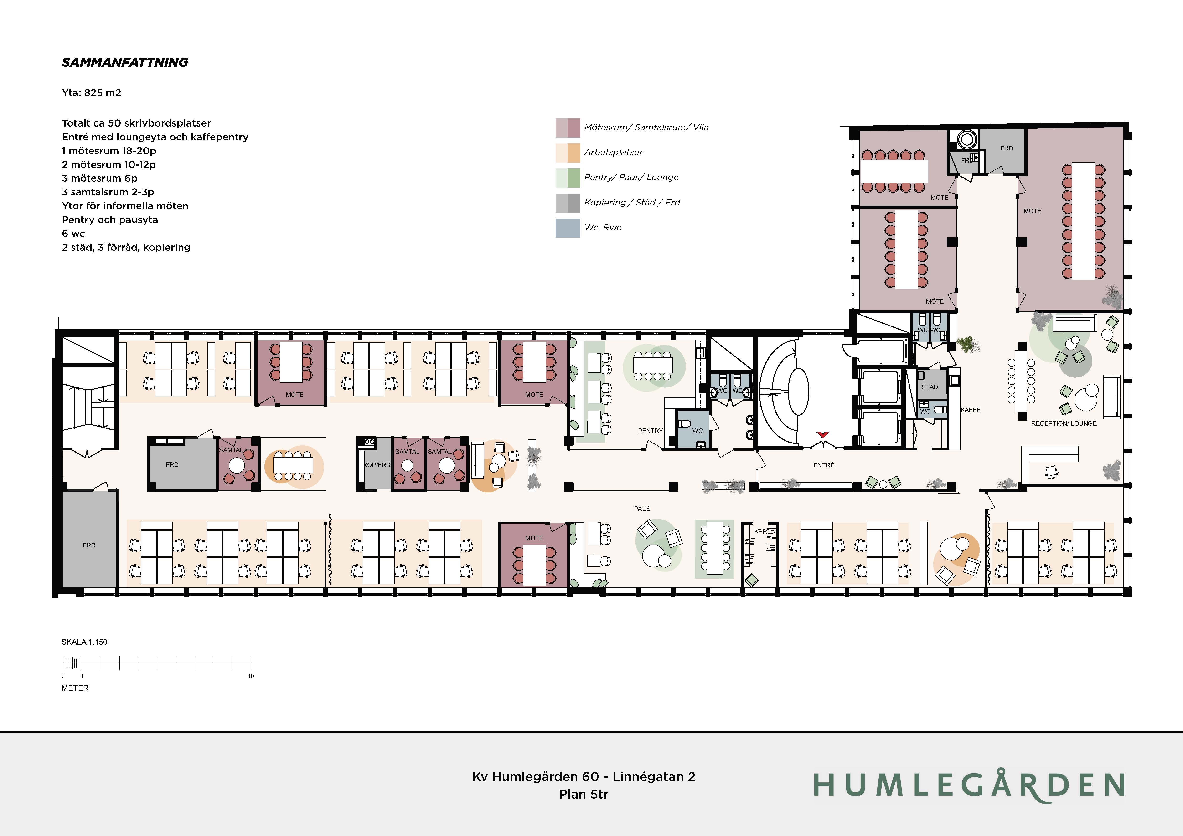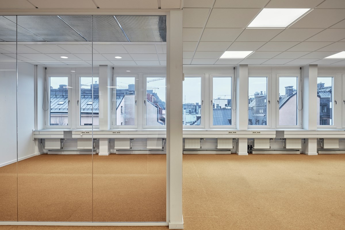 Kontorslokalen belägen på femte våningen har en total yta om cirka 825 kvm och erbjuder en flexibel och varierande planlösning. Lokalen består av öppet kontorslandskap med arbetsplatser, mötes- och samtalsrum i varierande storlek samt arbetsrum. Lokalen kan delas in i en tydlig intern och extern del. Lokalen är utrustad med moderna faciliteter och erbjuder en bekväm arbetsmiljö för alla medarbetare