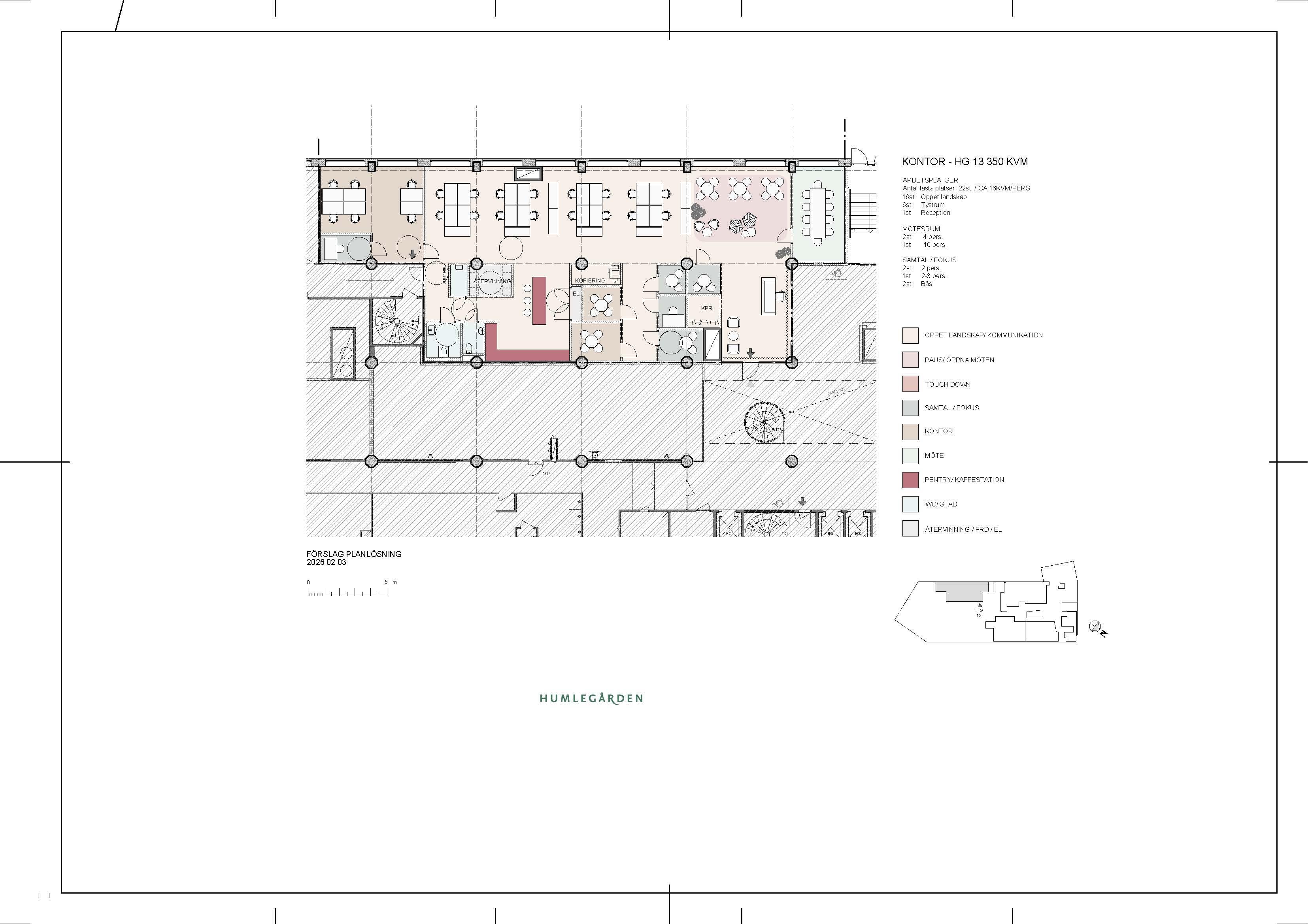 En välplanerad lokal med flexibel planlösning som kan anpassas efter hyresgästens behov. Här finns ca 16 arbetsplatser i öppet landskap samt ytterligare 6 platser i ett mer avskilt kontorsrum. Egen reception ger ett professionellt första intryck och generösa fönsterpartier mot lugna Härdgången skapar en inbjudande atmosfär. Lokalen erbjuder en bra mix av mötesrum, mindre samtalsrum och en lounge för gemenskap. Strax intill finns husets lastkaj, perfekt för verksamheter med behov av smidiga in- och utleveranser.