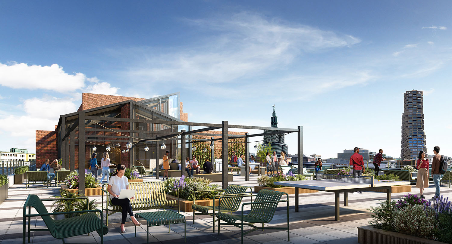 Att byta miljö under arbetsdagen, både utomhus och inomhus, är viktigt för att hålla energinivån uppe. En central del i Humlegårdens satsning är därför stora terrasser på taken och ljusgårdar inomhus med mycket grönska och trevliga miljöer.