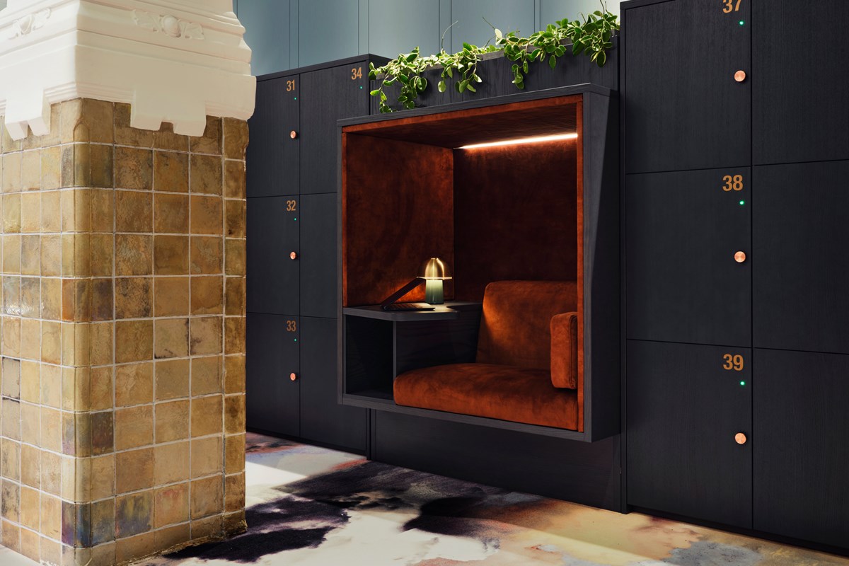 Konceptet som ligger till grund för upplevelsen tar avstamp i idén om att resa och upptäcka nya miljöer. För inredningen står Monica Eskedahl, konceptdesigner och inredare, i samarbete med Humlegården. Både medarbetare och besökare bjuds på en variation av tempo och upplevelser för alla sinnen i en variationsrik och flexibel miljö. Energifyllda och stimulerande miljöer kombineras med rum där man kan ladda batterierna och få nya insikter och inspiration. Hjärtat i lokalen är den gemensamma yta som också möter alla besökare och även är tillgänglig för de övriga hyresgästerna i huset, där en reception kombineras med välkomnande lounge- och arbetsytor. Platsen kan användas för större sammankomster och har utrustats med modern teknik för möten och musik. Mittpunkten i rummet utgörs av en skulptural 3D-printad bardisk som fyller många funktioner. Den har formgivits av designstudion Interesting Times Gang och är baserad på återvunna fiskenät och träspill. Glastaket smyckas av armaturer i en skräddarsydd konstinstallation som för tankarna till stjärnhimlen. I kombination med byggnadens vackra arkitektur skapas en arbets- och mötesplats utöver det vanliga.