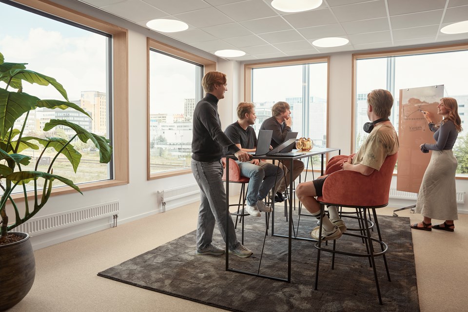 När Xensam började leta efter nya lokaler var det inte bara fler skrivbord och större yta som stod på önskelistan. Man ville hitta en miljö som speglar företagets kultur och ambitioner – och samtidigt lockar medarbetarna att samlas. Efter att ha tittat på flera olika alternativ föll valet till slut på Origo, fastighetsbolaget Humlegårdens nya kontorsfastighet belägen i mötet av Solna och Sundbyberg.