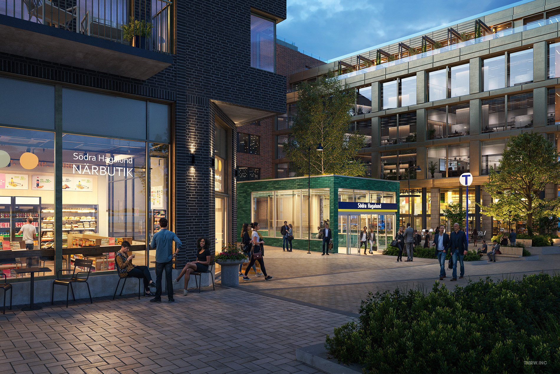 Våren 2020 påbörjades arbetet med utbyggnaden av Gröna tunnelbanelinjen. Linjen sträcker sig från Odenplan till Arenastaden. När den förlängda Gröna linjen står färdig 2028 kommer 80 000 människor att arbeta i närområdet och 11 000 nya bostäder ska skapas. Gröna linjen kommer att få tre nya stationer: Hagastaden, Södra Hagalund och Arenastaden. I Södra Hagalund möjliggör den förlängda linjen framväxten av en helt ny stadsdel. Tunnelbanan är startskottet för utvecklingen av hela området. Stationen blir också det naturliga hjärtat och samlingsplatsen i Södra Hagalund, och en uppgång placeras på Gelbgjutarevägen, mitt i det som idag är Hagalunds arbetsplatsområde.