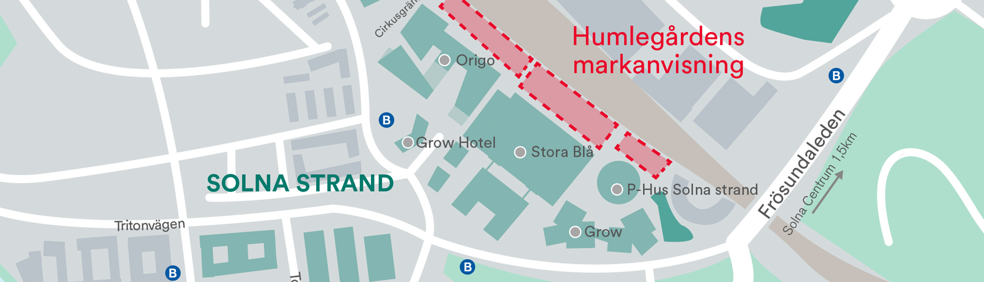 I norra Solna strand har Humlegården erhållit en markanvisning avseende kontor med en total ljus BTA om cirka 40 000 kvm fördelat på tre kvarter. De nya kvarteren skapas i samband med utbyggnaden av Mälarbanan. De nya byggnaderna kan påbörjas först när Mälarbanan står klar, preliminärt efter 2040.