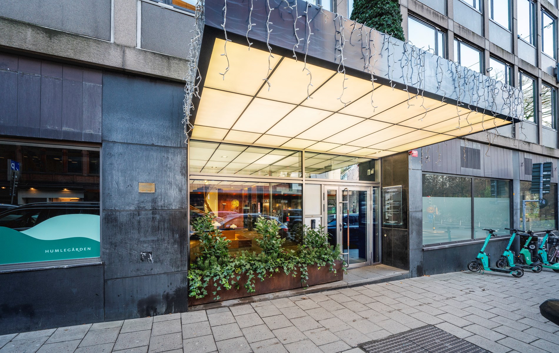 På Linnégatan 2 är lokalerna moderna och håller en mycket hög standard. En fantastisk utsikt ges också ut över Humlegården. I hörnhuset på Linnégatan 6 går en stor del av den ursprungliga inredningen i våningarna att återfinna i snickerier, sockelpaneler, fyllningsdörrar med raka överstycken samt profilerade taklister. Lokalerna i fastigheten är ljusa och utgörs främst av storrumslösningar. På Brahegatan 9 är lokalerna ljusa och flexibla, ett nyttjande av öppna lösningar ger mycket effektiva och funktionella lokaler.