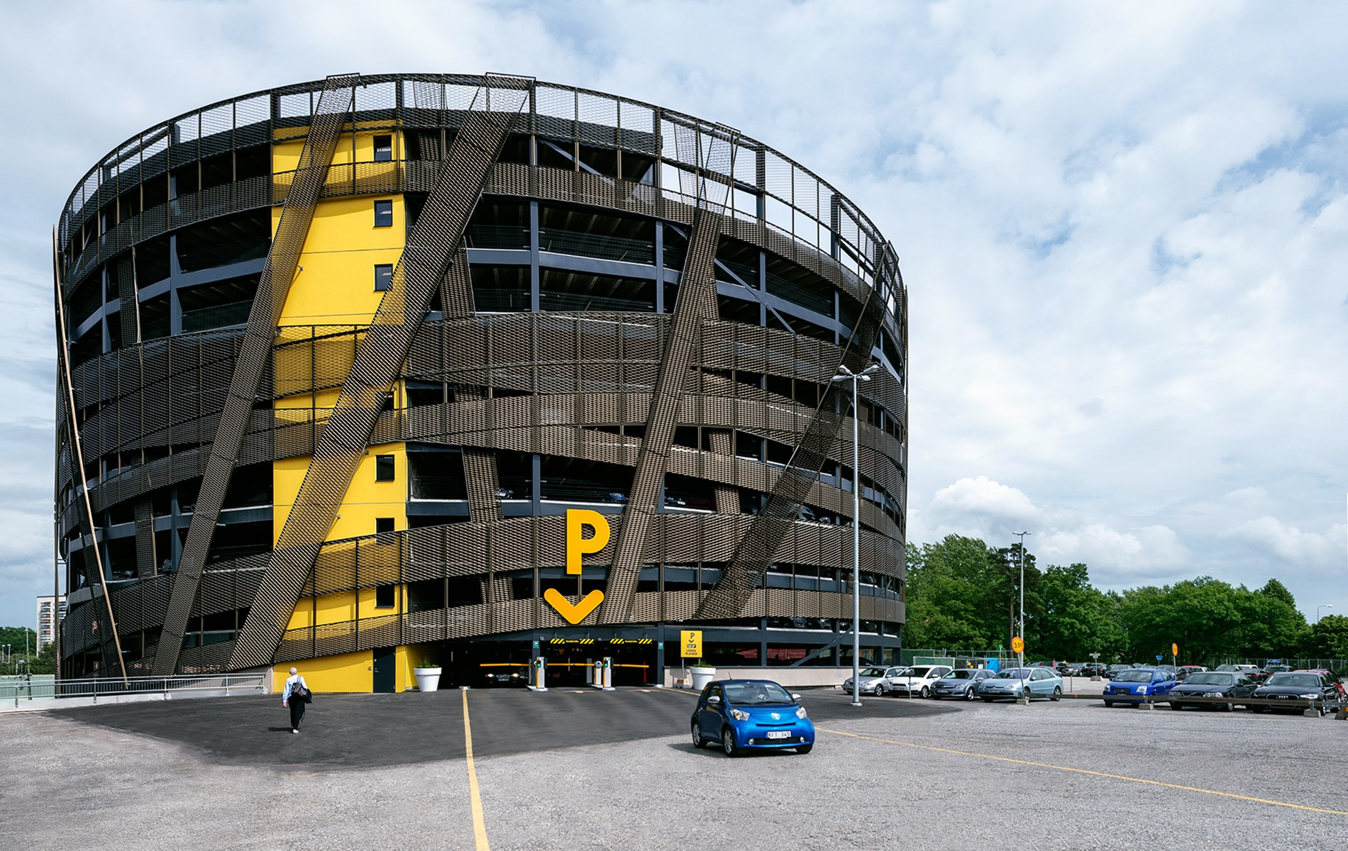 Parkeringshuset är 11 våningar högt och har två stycken in-och utfarter.